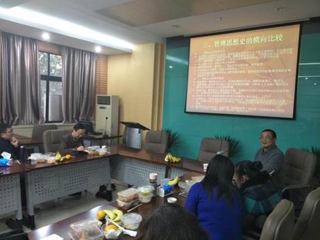 2017年10月11日中午十二点,公共管理学院在西北大学长安校区6号教学楼三层多媒体教室召开公共管理学术午餐会第2期“管理思想史纵横谈”。此次学术午餐会由公共管理学院刘文瑞教授主讲,召集人是公共管理学院翟绍果副教授。参与此次学术午餐会的还有公共管理学院党委书记孙录见副教授、张正军教授、许林教授等近三十位教师和博士生。会上刘文瑞教授分享了自己关于管理思想史纵向考察和横向比较的学术观点,并与参与师生进行了热烈的学术对话。