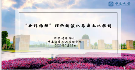 何雷博士分享的主题是“‘合作治理’理论的演化与本土化探讨”,他主要从三个方面进行了讨论,一是从“治理”中寻源,二是“合作治理”的发展,三是“合作治理”的本土化。首先,何雷博士对“治理”这一概念的产生进行了追本溯源,提出“治理”一词在学术研究中较早出现在经济学领域,并介绍了国外学者Fuller、Williamson以及我国学者薛澜、毛寿龙、俞可平关于“治理”的观点,提出国内较早引入对“治理”理论的系统介绍就可追溯到毛寿龙、俞可平两位学者的研究。以治理理论为基础,何雷博士展开了对“合作治理”的介绍,他通过对国内外众多学者的研究成果进行考察提出,“合作治理”作为治理理论的延伸,在学术界得到了广泛的关注和不同维度的研究,并将国内学者对于“合作治理”的理解和界定概括为三方面,一是合作治理的概念泛化;二是与西方理论研究的衔接与反思;三是合作治理的宏观解读与发展。最后,从制度与政策土壤、政策诠释等方面提出了关于“合作治理”本土化的思考。