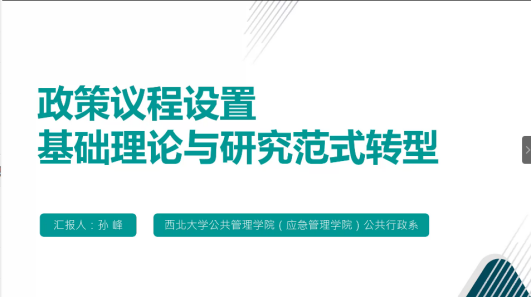 孙峰副教授分享了关于“政策议程设置:基础理论与研究范式转型”的研究成果。他的报告聚焦公共政策,主要围绕政策议程设置基础理论,从三个方面展开讨论:第一,政策议程设置在公共管理宏大谱系中的地位和作用,指出政策议程设置作为公共政策首要环节,对政策过程乃至公共管理目标设定和后续演进,具有前置性、基础性的实质影响。第二,政策议程设置的基础理论和分析框架,重点介绍了政策议程设置基本问题、触发机制、隐蔽议程以及多源流等四个理论框架。第三,政策议程设置研究范式的转型,在国内外研究困境凸显、现代化和互联网时代,政策议程设置正在酝酿以网络化和现代化为突破点的综合性研究范式,并且该新范式具有坚实的理论基础和合理的内在逻辑。