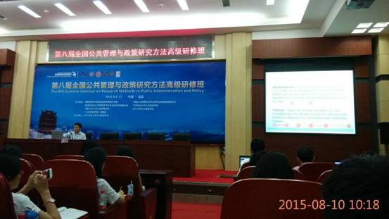 2015年8月6日至12日,第八届全国公共管理与政策研究方法高级研修班在华中科技大学举办。来自全国70多所高校的150余名青年教师参加了本届研修班。该研修班旨在为国内中青年学者介绍公共管理与政策领域的研究方法及工具,提高国内学者的研究方法和工具的应用水平。我院教师伍勇参加了本届研修班。