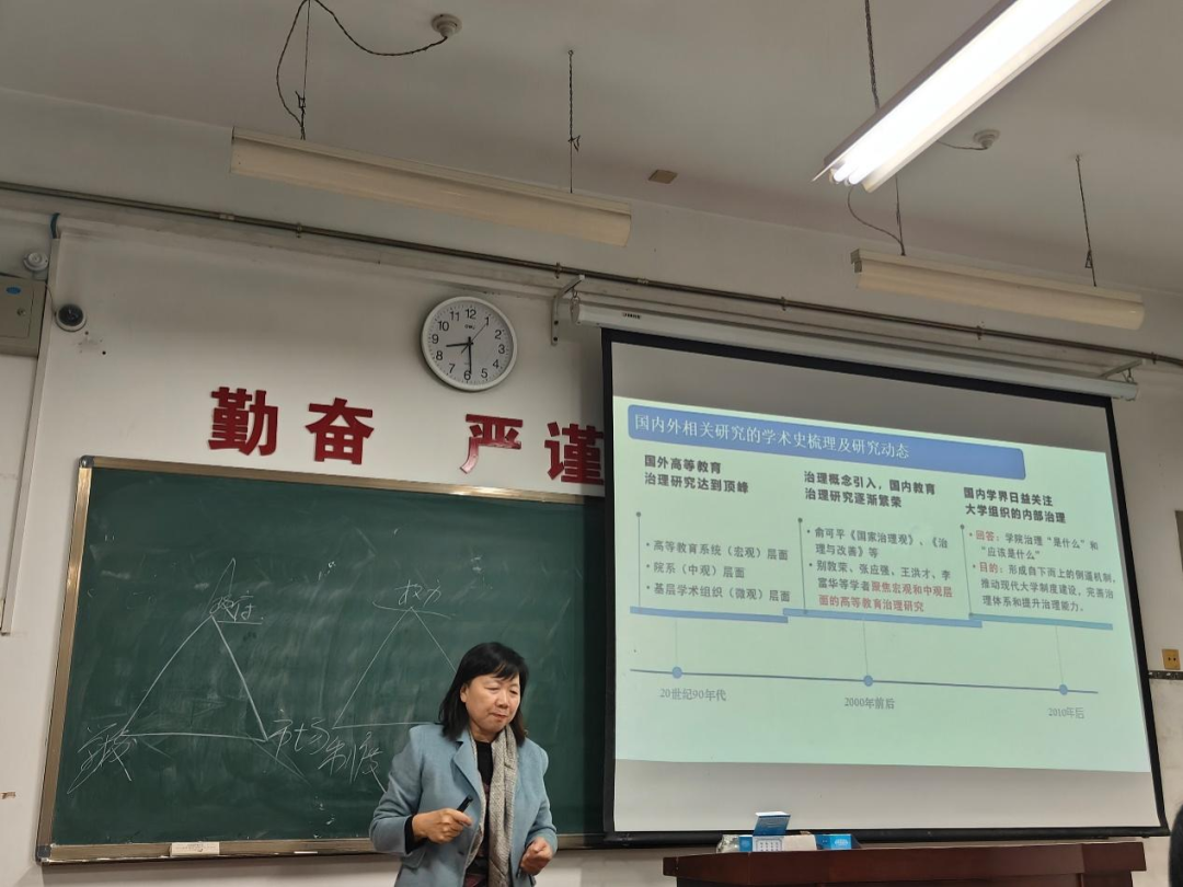 姚聪莉教授还以任职于双一流高校的教授为研究对象,对“双一流”高校二级学院治理的现实审视进行了讲解,包括研究设计、数据结果等方面,使同学们对学院治理与相应的研究方法有了更加深刻的印象与更加深入的了解。