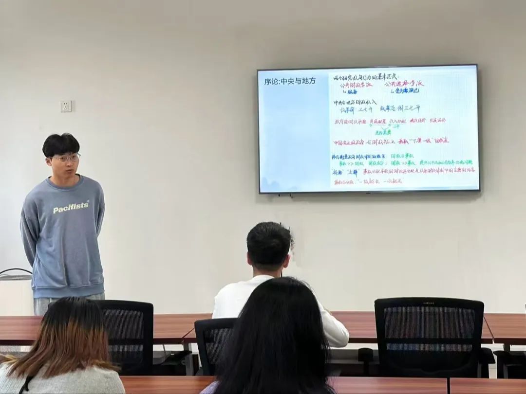 2023级行政管理硕士研究生郭艳伟分享的书籍是周飞舟的《以利为利——财政关系与地方政府因为》。该书主要从财政关系与地方政府行为的角度,对中国当代的政府行为特征及其运作规律进行了深入探讨。郭艳伟同学从财政体制、央地关系和地方政府行为三个方面对本书内容进行详细介绍,他指出政府财政既非政治目的,也非立国之本,但它是政府有所作为的关键。而财政关系的变化深刻影响了中央与地方的关系以及地方政府的行为模式。他还结合分税制改革,对土地财政形成的背景、原因、历史意义及弊端进行了针对性阐述。总的来说,该书是一本经济社会学著作,运用社会学的方法论和范式研究财税体制下的地方政府行为选择。其中提供了大量一手资料、数据和案例,为深入理解中国政府行为特征及其运作规律提供了有力支持。但同时,该书在央地财政分权的问题上对地方的关注多、对中央的关注少;对余量的关注多、对总量的关注少。在数据和案例的选择上,受限于研究资料和范围,选取的调查对象是否具有代表性和典型意义也有待论证。