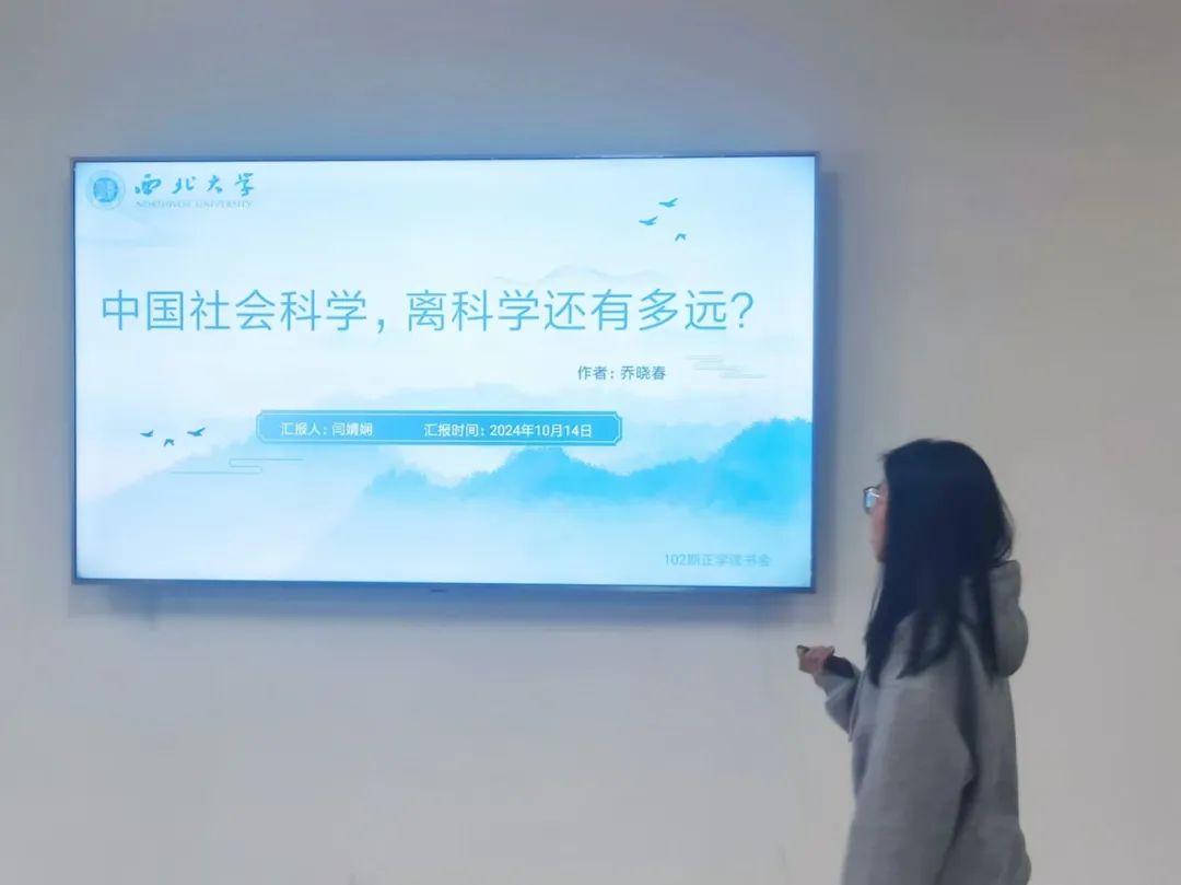 2024年10月14日,我院在西学楼北1308举办了2024年第17期正学读书会。西北大学公共管理学院2023级行政管理专业硕士研究生杨怡哲、2023级行政管理专业硕士研究生王佳坤、2023级行政管理专业硕士研究生马艳莉、2023级行政管理专业硕士研究生郭艳伟、2023级应急管理专业硕士研究生闫婧娴、2023级应用心理学专业硕士研究生马宏洁宇、2023级行政管理专业硕士研究生单育柔、2023级行政管理专业硕士研究生杨静、2022级图书馆学专业硕士研究生马瑜菡分别作为主讲人进行读书汇报,公共管理学院2024级博士研究生张根毓担任评议人,部分研究生旁听了此次报告会。