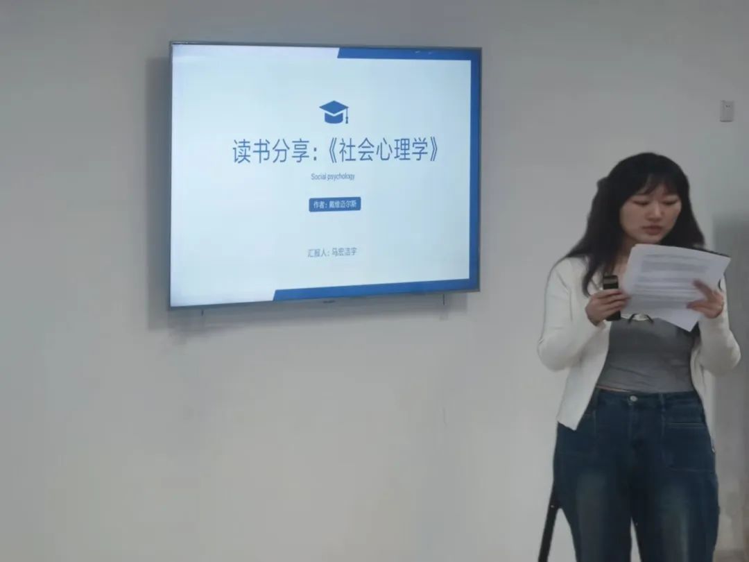 2023级应用心理学专业硕士研究生马宏洁宇分享的书籍是戴维·迈尔斯的《社会心理学》。戴维·迈尔斯的《社会心理学》作为经典教材,深入浅出地阐述了社会心理学的核心概念和研究方法。在此次分享中,运用生动具体的案例和心理学实验,探索了社会思维、社会影响以及社会关系等方面的心理学知识。从众现象是人们在群体压力下,放弃自己的意见,采取与大多数人一致的行为。通过分析群体压力、个人特质和情境因素对从众行为的影响,揭示了从众现象的复杂性和多样性。偏见则是指基于某些社会群体的成员身份而对其成员形成的一种态度,这种态度往往是不正确的否定或怀有敌意的。通过介绍性别偏见和自动偏见等概念,分析了偏见的动机根源,包括替罪羊理论和社会同一性理论。强调消除偏见需要增强自我意识、增加接触和交流、加强教育和宣传等多方面的努力。