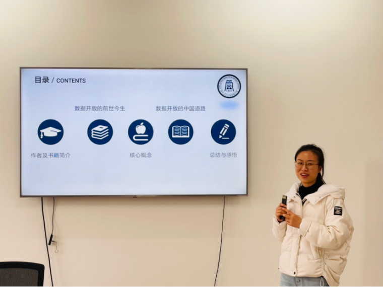 2023级行政管理专业硕士研究生徐曼分享的书目是《开放的数林:政府数据开放的中国故事》。她从作者及书籍简介、数据开放的前世今生、核心概念、数据开放的中国故事、总结与感悟这五个部分展开汇报。首先,她介绍了书籍的作者和书籍的主要内容。该书主要面对政府数据开放平台的现状和问题进行系统评测和分析,针对中国面临的现实问题开展研究,讲述和剖析政府数据开放的中国故事。接着,她介绍了政府数据开放的起源和背景、政府数据开放的价值、政府数据开放的收益与风险和政府数据开放的利益相关者。随后,她从数据产品和数据开放两个维度对本书的核心概念进行详细阐述。她还结合我国政府数据开放实践,介绍了上海、贵阳等在政府数据开放领域探索较早的城市采取的举措和当前政府数据开放水平。最后。她分享了自己的感悟,总结政府数据开放作为一个生态系统,不同利益主体在其中发挥的作用也不同,只有开放数据,才能蔚然成林。