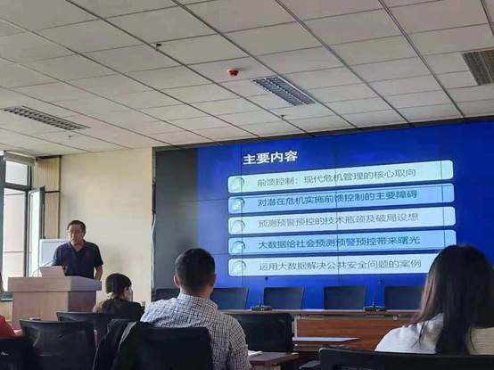 那为什么人类在公共危机管理中仍旧屡屡陷入周昙陷阱?阎耀军教授认为前馈控制在实践中的关键前提要件——社会预警的实施存在着六大障碍:预测预警的困难性、风险预报的自风险性、危机事件的小概率性、执政行为的短期性、政绩考核的片面性、资源配置的片面性,这六方面原因导致要对潜在危机实施前馈控制存在困难,这就致使现实中形成了“重应急”“轻预警”的客观选择。而要使二者平衡,预测预警产品必须要有信度和效度,阎教授认为工具科学化是解决问题的关键之一,他认为现代社会巨系统的预测预警需要借助一种科学工具——仿真模拟技术,仿真模拟是当代解决预知风险的最前沿的方法,而大数据给社会预测预警预控带来曙光,他指出大数据预测这一空前革命性预测工具给预测带来了革命性突破,极大突破人类“脑力极限”、突破因果预测的极限,为适应社会预测互动反射特性提供了绝妙的破解技术,与此同时大数据还解决了数据供给问题,并且大数据的在许多领域预测的成功实践也增强了其适用到公共危机管理中的可行性。最后,阎耀军教授现场展示了北京市怀柔区运用大数据解决公共安全问题的成功案例。