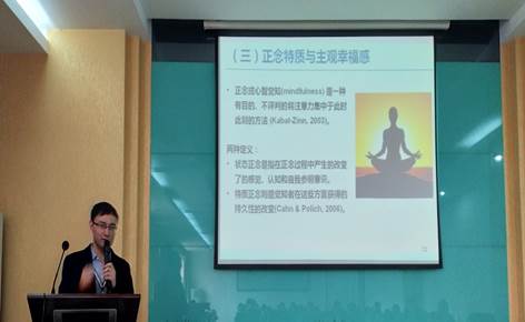 报告伊始,孔风博士以中西方著名思想家亚里士多德、孔子等关于幸福的名言,引出“幸福是一个古老而永恒的话题”的观点。紧接着阐述了研究幸福的原因所在:即幸福感对人们生活中的很多方面都会产生重大影响,如幸福的人有更低的心率和血压、更强的免疫系统,且幸福感对于人际关系、创造力、抗压力等方面都有积极影响。随后,结合央视关于“您幸福吗”的采访的例子探讨“幸福是什么”的问题,他指出幸福的标准因人而异,有时它仅取决于你是怎么想的,即“幸福在我心”。在此基础上,孔风博士为我们概括和总结了幸福的定义。接着,他进一步指出了影响主观幸福感的因素,例如遗传或人格、外部环境等,阐明了幸福的神经机制,回答了“我们的幸福来自哪里”的问题。在此过程中,孔风博士指出前人研究幸福感神经机制的技术局限性:包括采用诸如脑电和红近外光谱技术导致空间分辨率不足等问题,并提出以功能磁共振技术为代表的诸如弥散加权成像、扩散张量成像以及静息态功能磁共振等技术在解决此类问题上的优势。通过对多项功能磁共振指标以及与问卷指标间的相关、回归分析,探讨了主观幸福感的结构基础部分、功能基础部分和人格影响主观幸福感的神经基础部分,从心理学角度来说明了幸福的神经基础。最后孔风博士对整个报告进行了总结:1.遗传或人格、外部环境和个体的有意活动共同决定了个体的幸福水平;2.大脑存在一个幸福中枢,认知幸福感主要与包括默认网络、社会认知以及边缘系统等相关的多个脑区存在关联,个体的情感幸福主要与杏仁核有关;3.人格特质对主观幸福感的影响有其特定的神经基础。并为我们概括总结了人格影响幸福感的神经机制及模型。