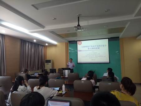报告伊始,刘教授首先从图文并茂的“三人成虎”和“阿希从众实验”切入,详细介绍了什么是从众和羊群行为,并说明了目前学者对于两者是否完全相同有所争议。刘教授更倾向于两者是有细微差异的,羊群行为是一种预期理性行为,而从众行为不一定是预期理性行为,羊群行为只是一种特殊的从众行为。其次,刘教授由羊群行为产生的两个必要条件引出互联网用户中更加突出的羊群行为。刘教授根据目前文献对于互联网羊群行为的现有研究如软件接纳、P2P借贷、网络购物、在线阅读等领域,从而分析出互联网用户羊群行为产生的驱动因素:网络外部性、口碑效应与信息级联。接着,刘教授以自己已发表论文为例,讲解了在计量分析过程中的一些技术问题,如以在线阅读、网购中体现的不确定性与决策支持为研究思路,运用网络爬虫等技术采集客观数据(如信息级联、口碑效应与商品类型或推荐系统的交互面板数据)与主观数据(如双十一网购截面数据),从而实证分析出互联网用户羊群行为的实际影响,除此之外还从神经机制方面提出了一种新的研究思路。最后,刘教授针对大数据时代下的信息系统方面研究趋势,阐述了自己的一些看法。