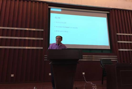 宋培彦博士就《从认知科学看知识组织系统构建》做了报告。报告分为三部分:在第一部分中,宋博士介绍了知识认知过程,强调应遵循结构主义、联结主义、格式塔心理学这三个原则对知识进行组织和管理;并且引用图片、文字、隐喻等例子,表明认知过程受到注意机制、模式匹配、记忆与推理、知识表征四方面的影响;最后引出为何要从认知科学看知识组织。梁博士在报告的第二部分重点讲述了知识组织工具与认知结构。知识组织系统包括术语库、叙词表、本体、语义网络等;知识组织工具是对知识的有序化描述。认知科学有助于解释与预测,提升知识组织效果。最后一部分则介绍了基于认知的知识探索、基于知识图谱的专家推荐模型实验实例等内容。