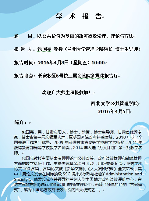 我院举办“以公共价值为基础的政府绩效管理”专题讲座