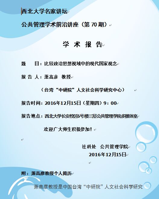 西北大学名家讲坛公共管理学术前沿讲座(第70期)