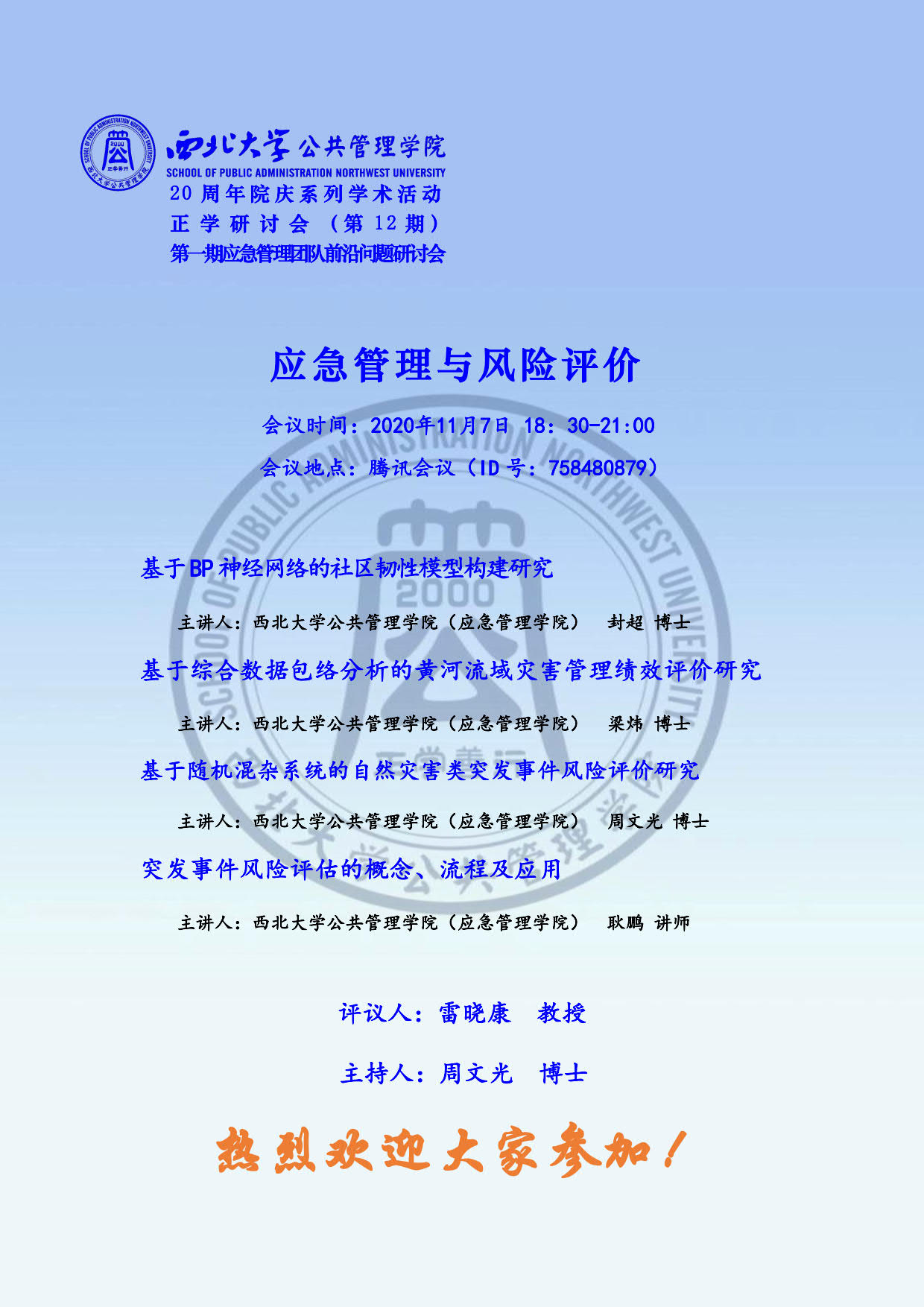 公共管理学院(应急管理学院)“正学研讨会”第12期暨第一期应急管理团队前沿问题研讨会