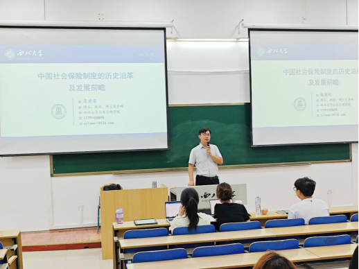 2024年9月18日晚18:00,西北大学公共管理学院聂建亮教授在长安校区教学四号楼4j301为我院2024级全体硕士研究生作了题为“中国社会保险制度的历史沿革及发展前瞻”的专题讲座。