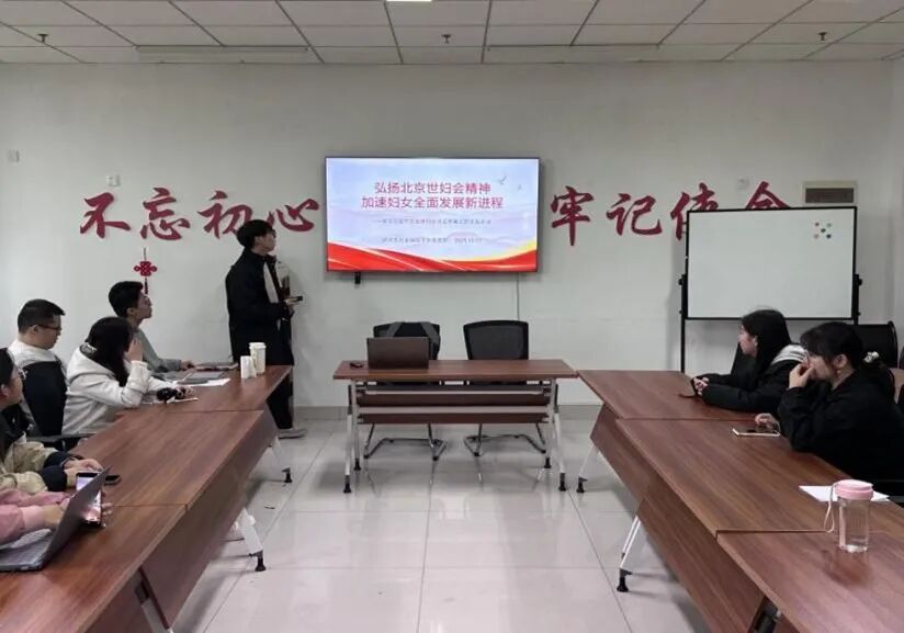 会议第一项,支部组织委员赵焕理同志以《弘扬北京世妇会精神,加速妇女全面发展新进程》为题,带领支部全体同志深入学习了习近平主席在全球妇女峰会开幕式上的主旨讲话。重点围绕妇女事业发展,对保障妇女权益、发挥妇女“半边天”作用等论述进行了深入解读。习近平主席提出要共同营造有利于妇女成长发展的良好环境,共同培育推动妇女事业高质量发展的强劲动能,共同构建保障妇女权益的治理格局,共同书写促进全球妇女合作的崭新篇章,这些建议为全球妇女事业发展提供了清晰的方向和具体的行动指南。
