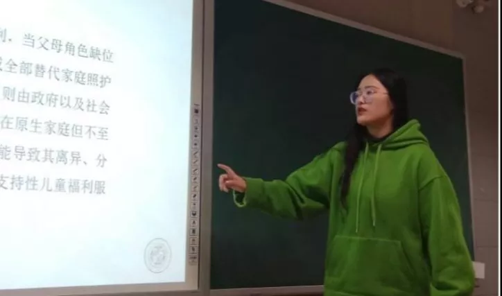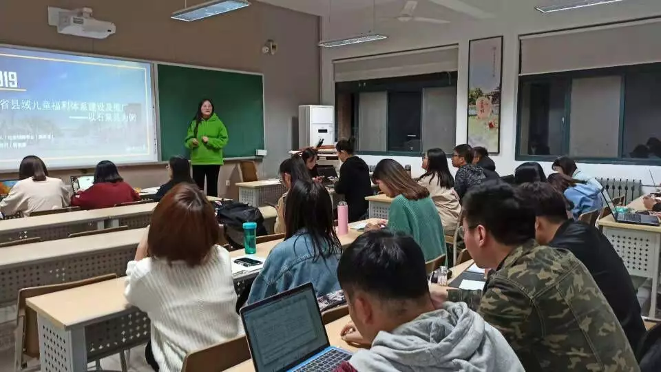 第三位进行主题分享的是18级社会保障专业的廉姝洁同学,她的讲座题目是《陕西省县域儿童福利体系建设及推广》,讲座主要分为三个部分:儿童福利相关理论基础、儿童福利体系模型、研究计划。