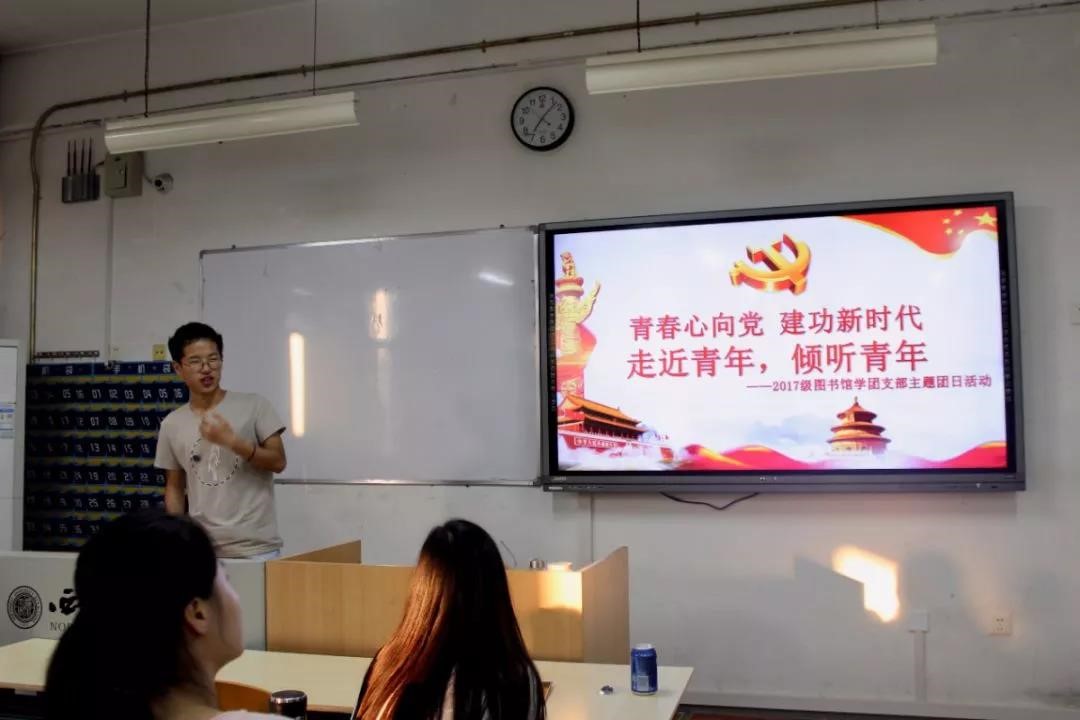 为贯彻落实习近平总书记在纪念五四运动100周年大会上的讲话精神,公共管理学院2017级图书馆学团支部2019年6月13日19点在2307教室举办“青春心向党•建功新时代——走进青年,倾听青年”主题班会。公共管理学院专职团干杨嘉仪老师和2017级图书馆学专业班主任王铮老师出席了本活动。