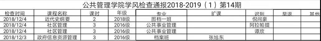 12月3日至12月7日期间,学院学生工作办公室组织对我院学生的上课情况进行检查。在检查中,我院有个别学生缺勤,望及时改正,以正我院学风学纪。
