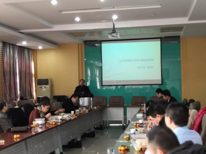 2018年12月12日中午12点,西北大学公共管理学院第15期学术午餐会“公共管理教学研究心得”在长安校区第六教学楼三层多媒体报告厅举行。本次学术午餐分享会的主讲人是公共管理学院梁忠民教授,召集人是翟绍果教授与岳成浩副教授,出席本次会议的还有周明教授等30余名师生。会议伊始,岳成浩副教授代表在场师生向梁忠民教授表示欢迎与感谢!随后,梁忠民教授结合自身几十年的讲坛岁月与研究生涯,就如何处理好教书育人与学术研究之间的关系问题与大家分享亲身经验与心得。在场师生无不为梁忠民教授“你来之前数千年悠悠岁月已逝,未来数千年在静默中等待”那般使命感所触动,本次分享会获得与会师生的一致好评!