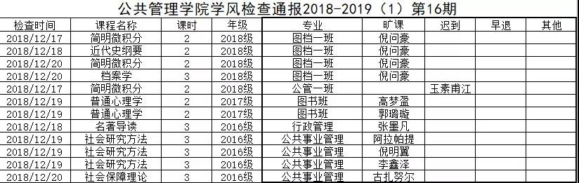 12月17日至12月21日期间,学院学生工作办公室组织对我院学生的上课情况进行检查。在检查中,我院有个别学生缺勤,望及时改正,以正我院学风学纪。