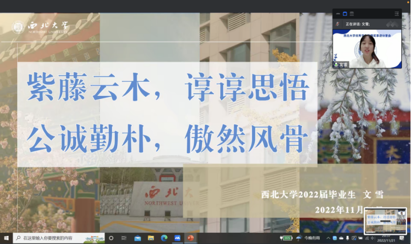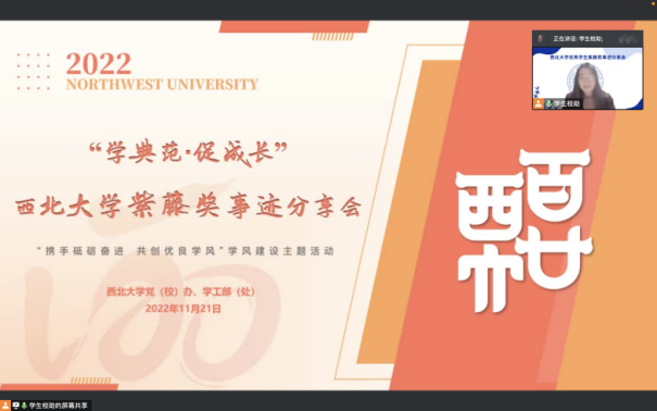 为加强学风建设,助力新生培养良好品质,充分发挥学生校长助理的“桥梁”作用,我校于11月21日19:00以线上线下相结合的形式召开西北大学紫藤奖事迹分享会。公共管理学院分会场于西学楼1304会议室召开线下会议,2022级新生线上线下共同参会。