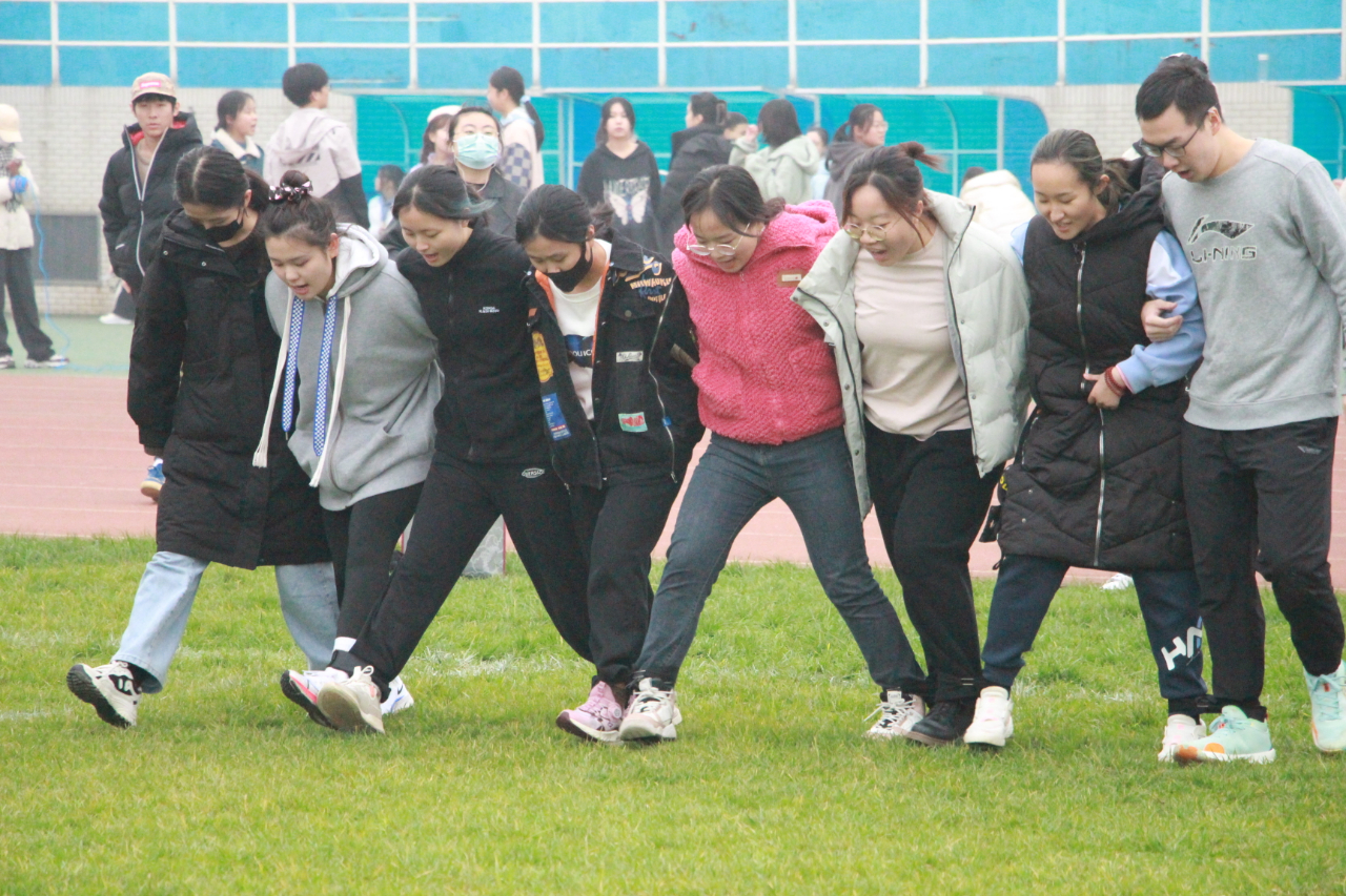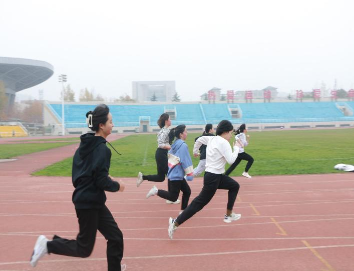 操场上“珍爱生命,热爱运动”八个大字熠熠生辉,操场中的公管学子用青春热血诠释这八个字。