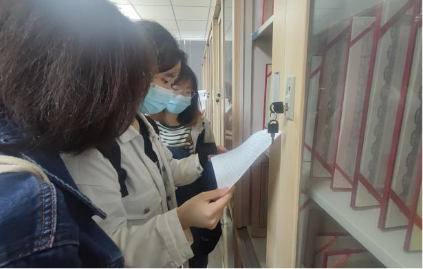 随后,韩馆长带领同学们前往馆内各室与库房。在二公局档案馆实习的2020级档案班的学长学姐们协同馆长一起为同学们介绍了各室各库房以及档案业务工作的相应流程。