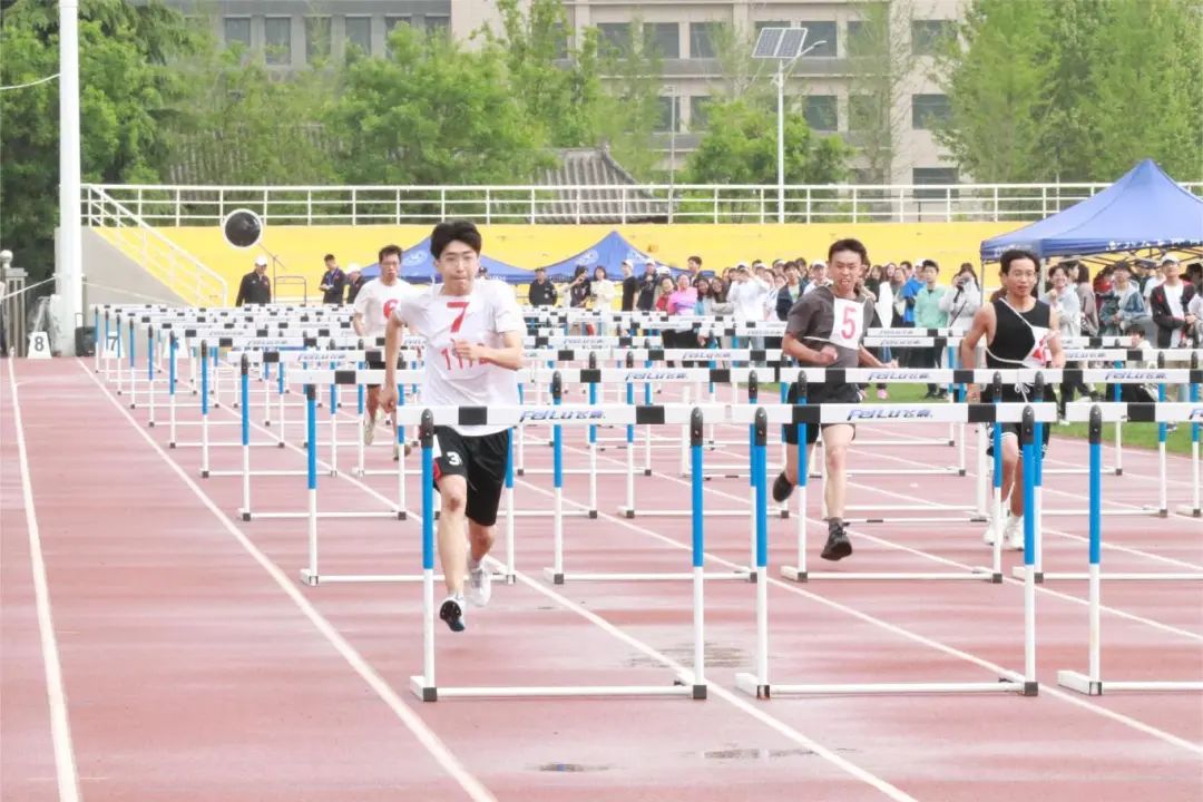 在男子110跨栏比赛中,姜文谦同学获得第四名;