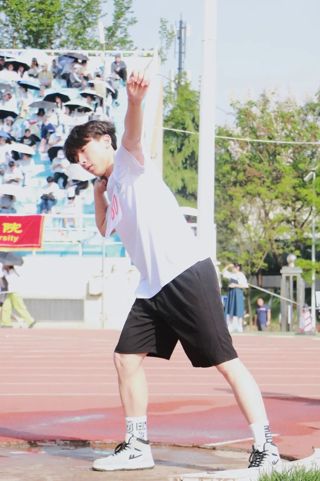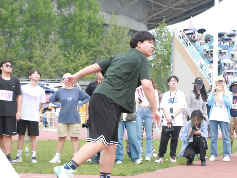 沉甸甸的铅球托举起青春的重量,