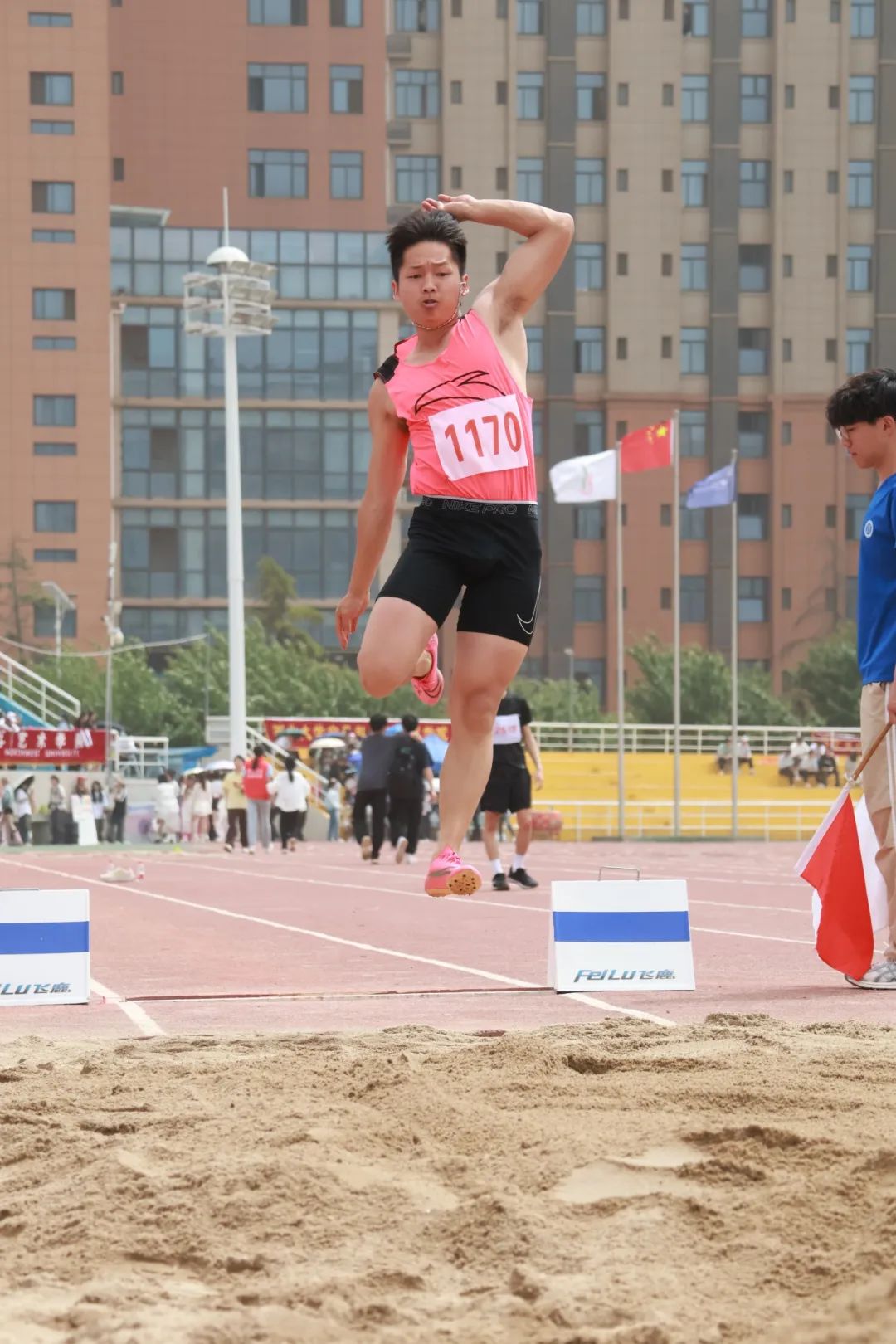 在男子跳远决赛比赛中,李昊同学获得第四名;