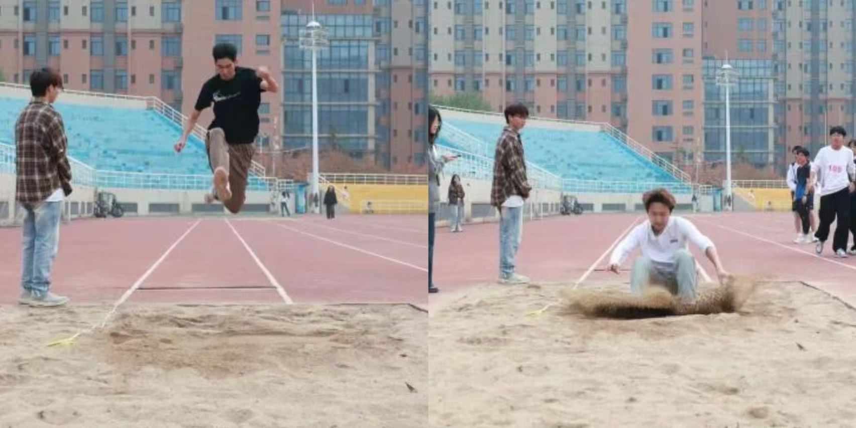 脚步跃起,稳稳落地,在空中划出一道优美的弧线,这是属于跳远的独特魅力,起点线与落脚点之间的距离,是独属于他们的辉煌与荣光。