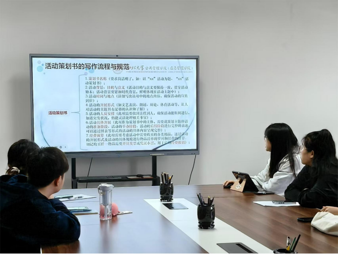 实践部王媛媛对活动从策划至开展的各个环节做了细致要求。她明确介绍了多媒体设备的使用和维护流程,强调策划书写作相关流程和规范,方便各部门精准协作,并对未来活动举办种类及形式提出具体规划,期望能切实服务于研究生的学业成长与综合能力提升。