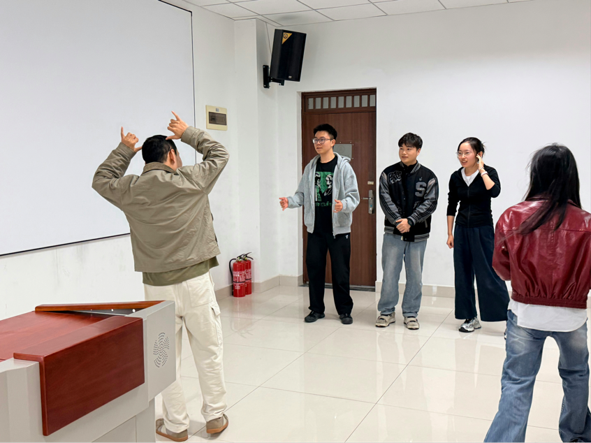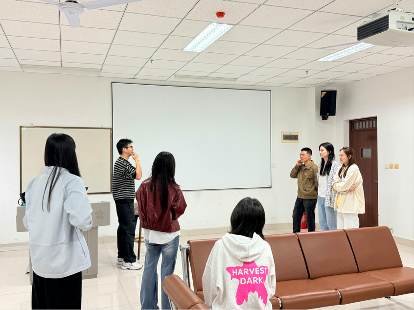 最后,一场充满激情与趣味的“你比我猜”游戏将活动推向了高潮。团队协作是研究生学习生活中不可或缺的一部分,而“你比我猜”则为新生们提供了一个展示团队默契的绝佳平台。在“你比我猜”游戏中,新生们根据总人数分为8组,每组派1名同学比划,其余同学猜题现场气氛紧张而热烈,大家纷纷使出浑身解数,用夸张的肢体动作和丰富的表情传递信息,引得现场笑声不断。这个游戏不仅考验了新生们的团队协作能力和沟通能力,更让大家在欢乐的氛围中感受到了团队合作的力量,增进了彼此之间的信任与默契。