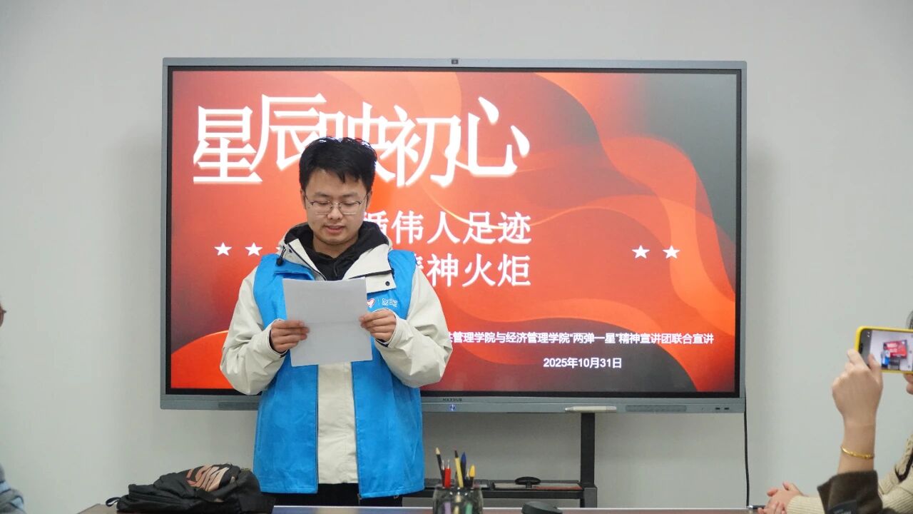 大漠风沙裹挟的峥嵘记忆在宣讲声中苏醒,戈壁星辰见证的强国传奇在现场流转。2025年10月31日,西北大学公共管理学院与经济管理学院携手举办“两弹一星”精神联合宣讲活动。两院青年以赤诚为笔、以故事为墨,在跨越时空的精神对话里,让“干惊天动地事,做隐姓埋名人”的信仰之光,在新时代青年心中灼灼生辉。