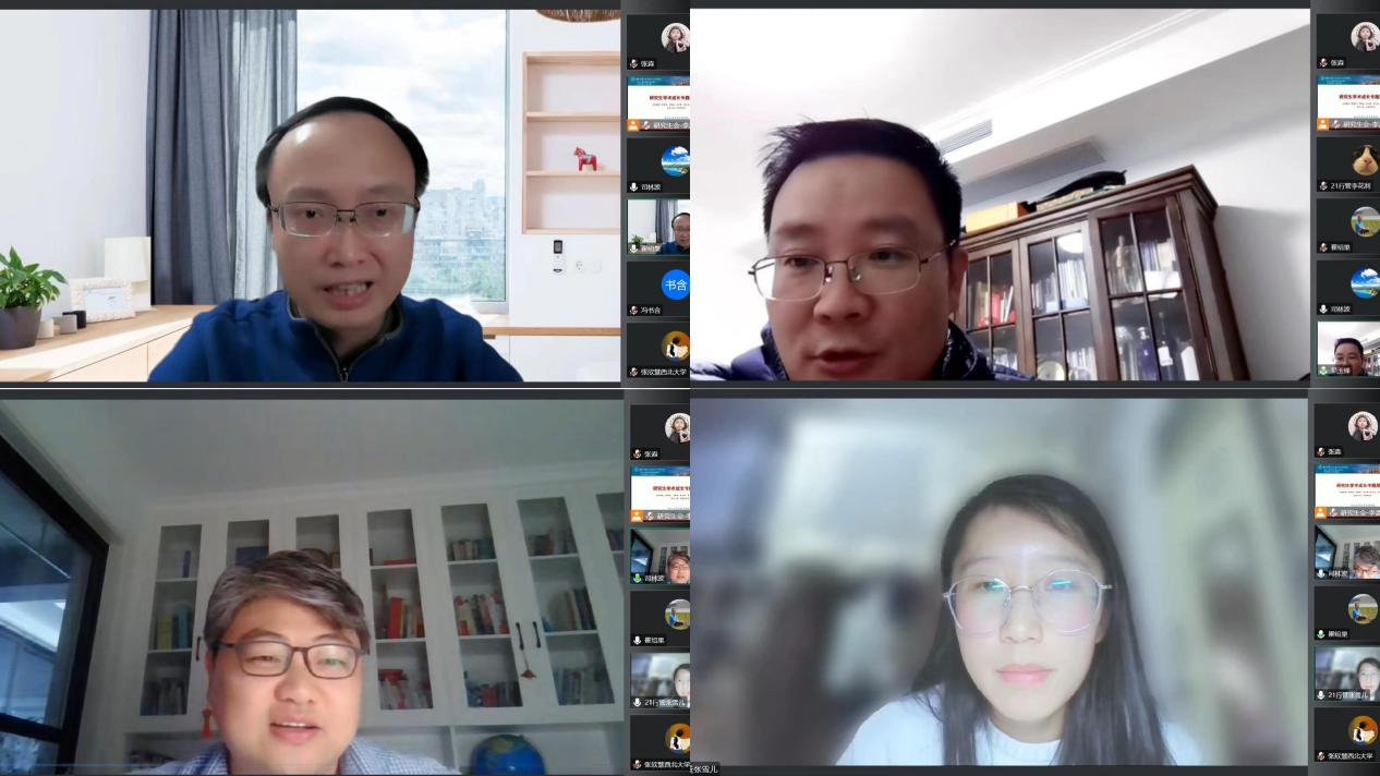 随后,不同年级的博、硕士研究生代表就毕业论文选题方向与时间节点、中期考核与预答辩、课程设置、研究方法课程安排、论文发表、科研项目、导师开放日及未来职业发展等方面提出意见与发表建议。与会教师认真听取了同学们的困惑和建议,对同学们参与科研学术的热情给予肯定,并针对论文选题、课程设置、学术论文、科研项目及社会实践等问题进行了耐心细致的解答。