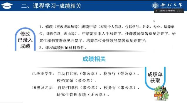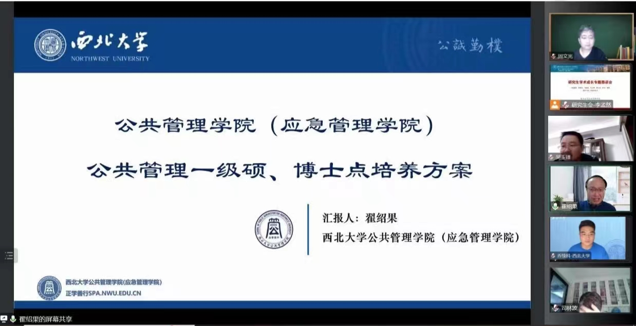会上,翟绍果老师首先对公共管理学院(应急管理学院)公共管理一级硕、博士点培养方案(2022版)进行介绍,解读了我院研究生读书交流会和学术报告会实施办法,并对西北大学研究生学术不端行为处理办法、我院学术学位硕博研究生在读期间科研成果规定、研究生学业学术成长全过程进行了详细说明。