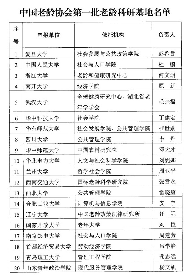 2020年7月7日,《中国老龄协会关于公布第一批老龄科研基地遴选结果的通知》(中老协发〔2020〕21号)发布,西北大学公共管理学院民政部政策理论研究基地合作单位以及复旦大学社会发展与公共政策学院、中国人民大学社会与人口学院等20家单位入选。我院院长、基地主任雷晓康教授将担任我院老龄科研基地的负责人。