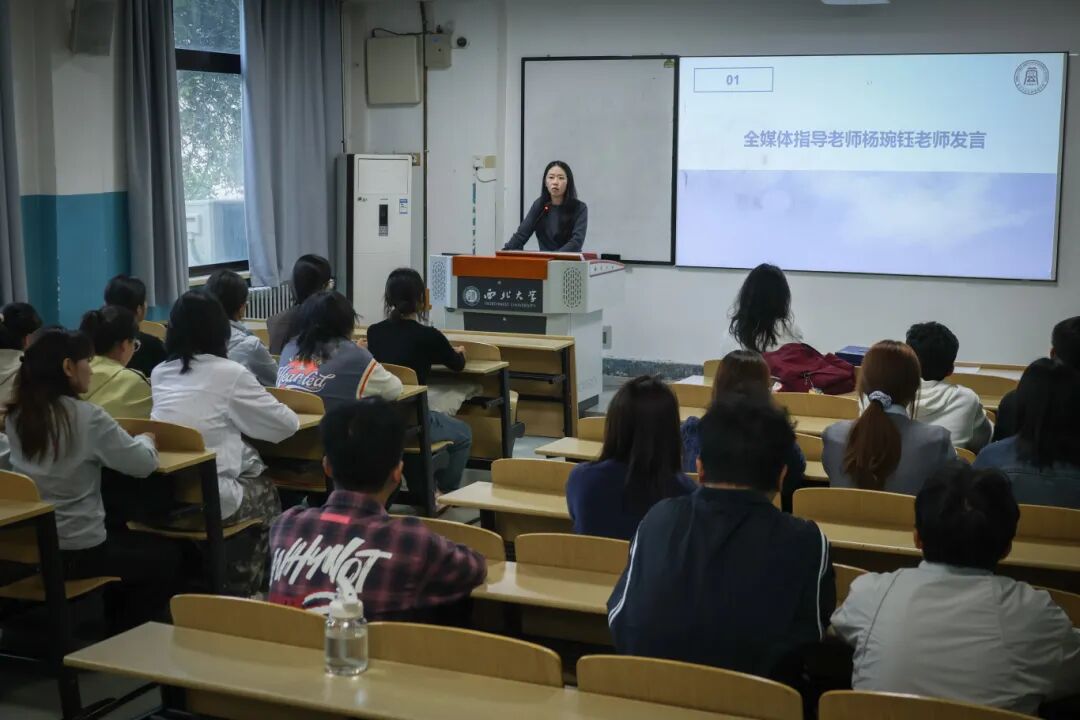 杨琬钰老师首先对新成员的加入表示热烈欢迎,指出全媒体中心作为公共管理学院的喉舌,应承担起产出更多有温度、有力量、贴合大众和时代的优质内容的责任,更好地传播公管声音。接着,杨琬钰老师系统介绍了全媒体中心过往取得的丰硕成果,鼓励新成员踏实工作,追求创新。最后,杨琬钰老师针对工作规范提出具体要求,强调需优化工作流程、构建层层审核的闭环机制,并寄语全体成员勠力同心,共同推动全媒体中心迈向更高质量发展。