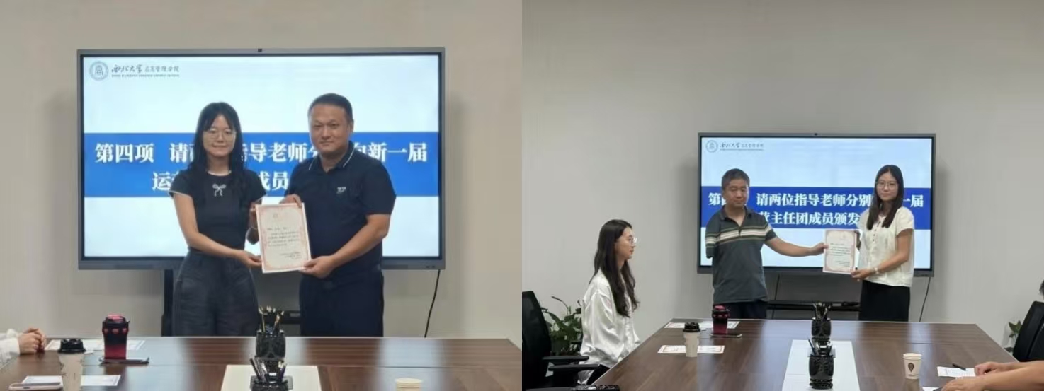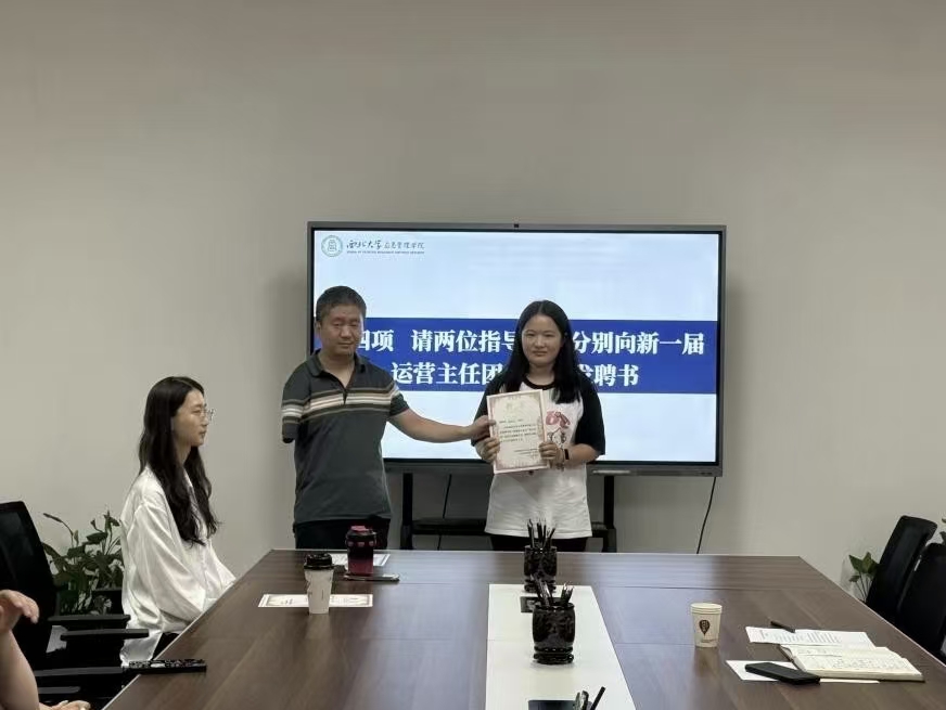 随后,韩杰老师与周文光老师为新一届拟聘成员颁发聘书,鼓励大家新的一学年再接再厉,创新发展。
