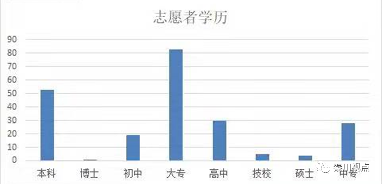 四是从参与志愿者组织活动人员的教育素质观察,受过高等教育的志愿者参与的积极性和主动性较为突出,对公益事业和疫情防控具有较强的参与意识、友爱情感、奉献精神,家国情怀较为浓厚。