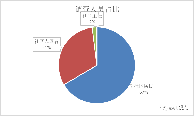一是从调查数据有效份数观察,社区主任占2%,居民和志愿者分别占调查份数67%和31%。主要体现和反映抗击疫情工作中,最基层一线人员和居民的需求基本构成状况。