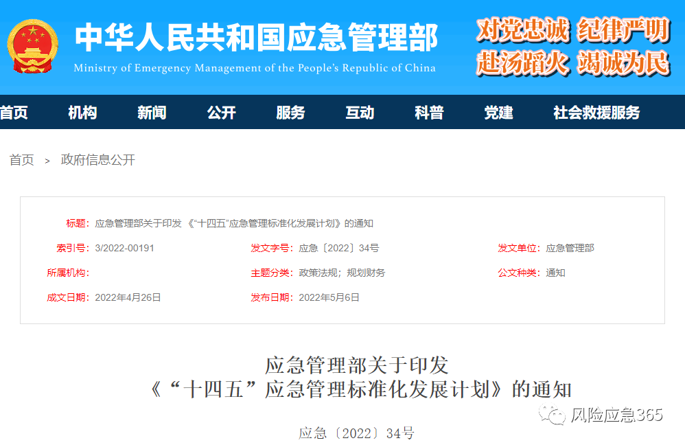 《“十四五”应急管理标准化发展计划》已经应急管理部2022年第10次部务会审议通过,现印发给你们,请认真贯彻执行。