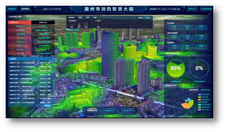 滁州学院2021年获批了应急技术与管理本科专业,成立了应急管理学院,为了保障“智慧消防”的运行效果,避免“重建设、轻运营”的情况,受本地消防救援支队委托,成立了“城市智慧消防数据监测服务中心”,对建成区域的消防安全隐患做到全时监测,并制订了隐患监测处理机制,由该校应急技术与管理本科专业的相关老师和实习生参与到消防隐患数据监测服务中,并带动了相关课程的建设,为消防安全治理提供了有力的人才支持。