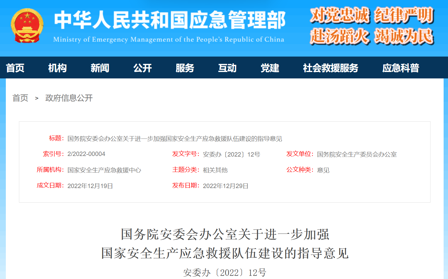 (关于进一步加强国家安全生产应急救援队伍建设的指导意见)