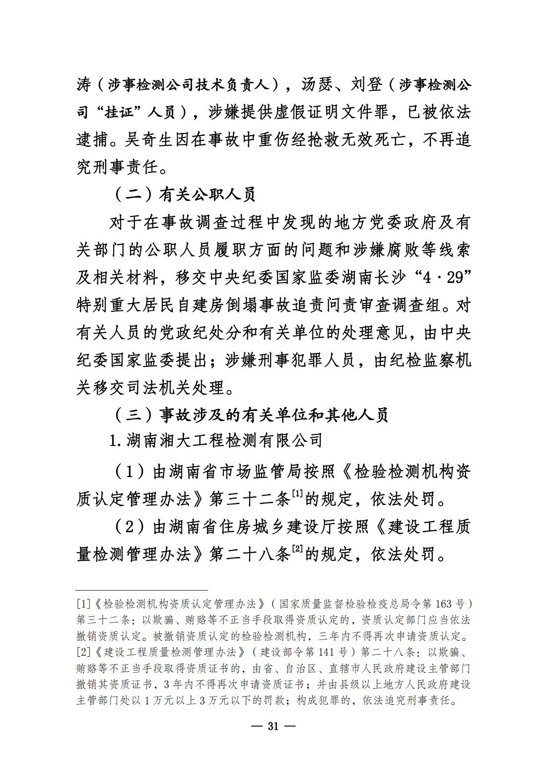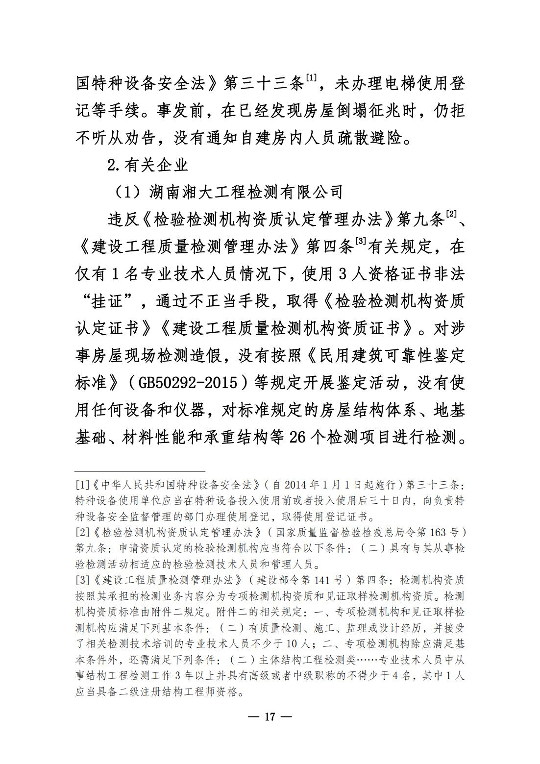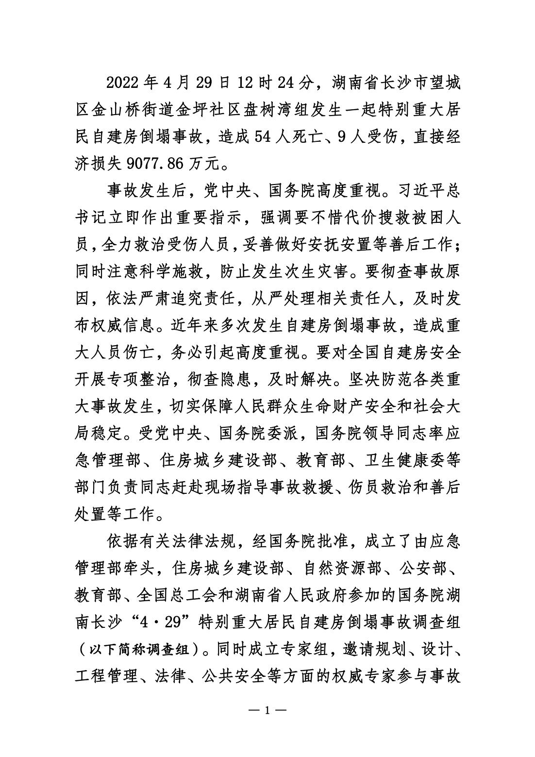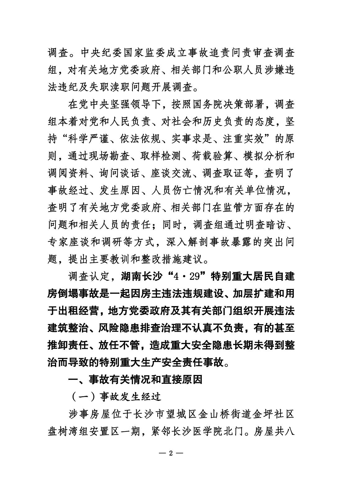 《湖南长沙“4·29”特别重大居民自建房倒塌事故调查报告》公布