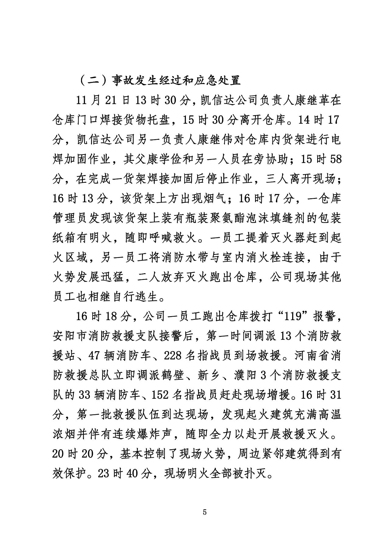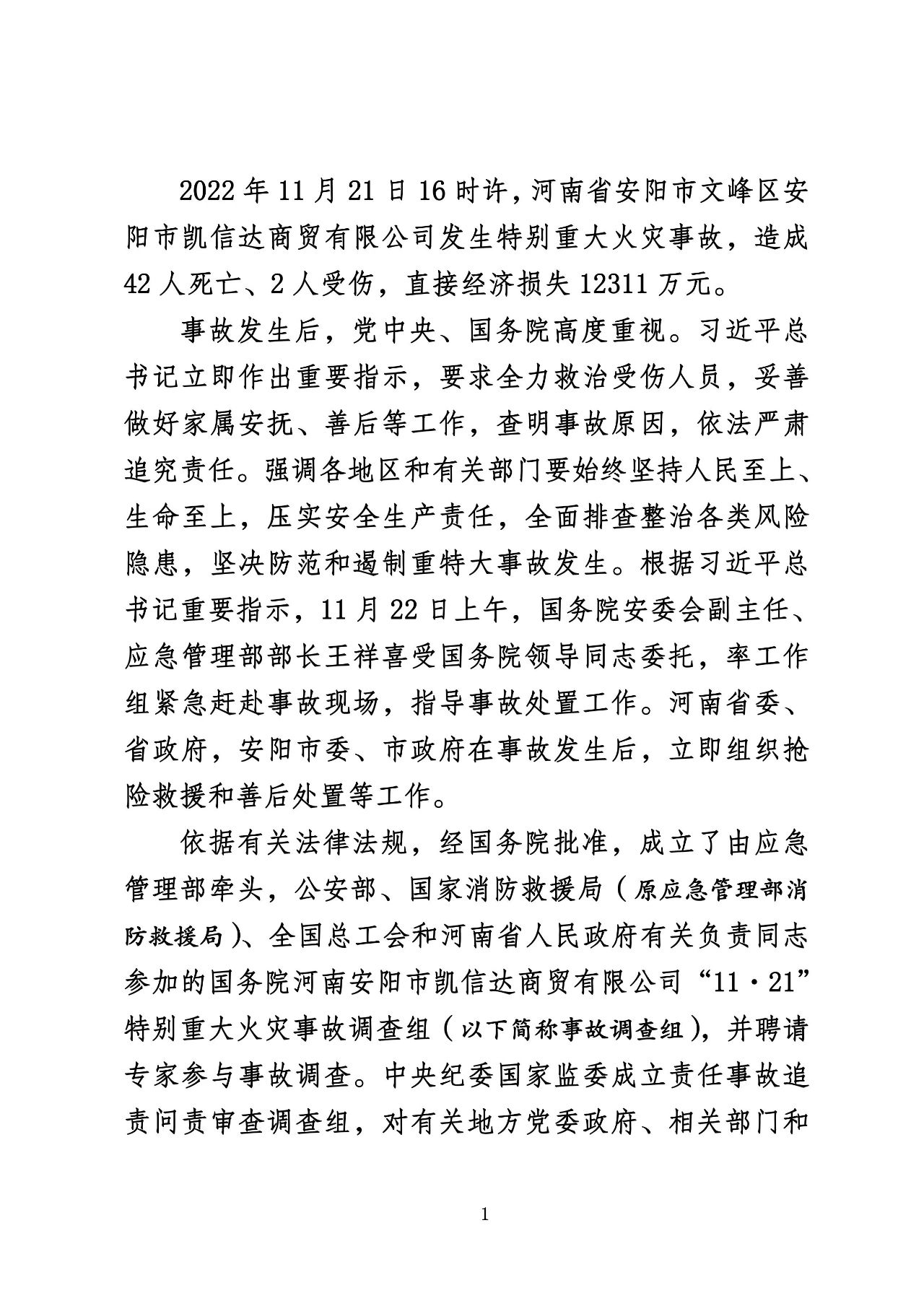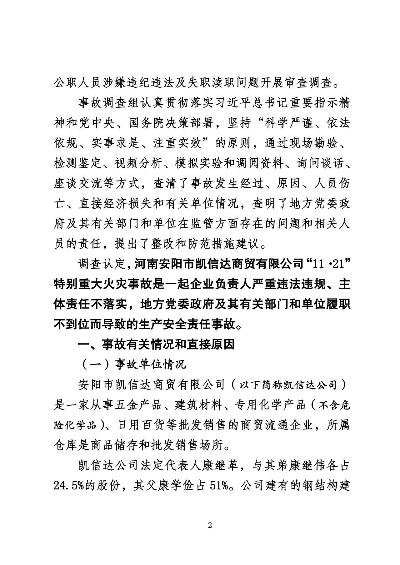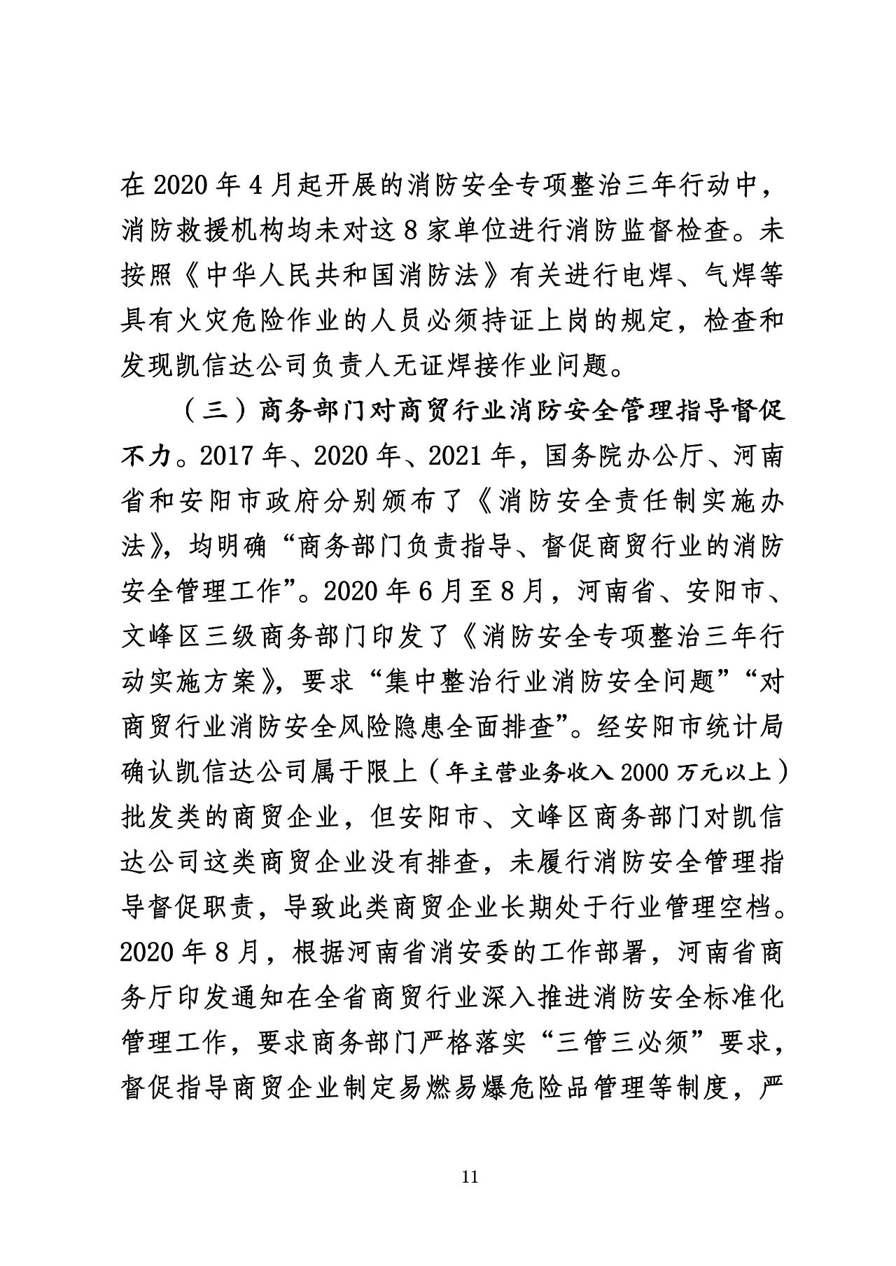 调查报告 | 河南安阳市凯信达商贸有限公司“11·21”特别重大火灾事故调查报告