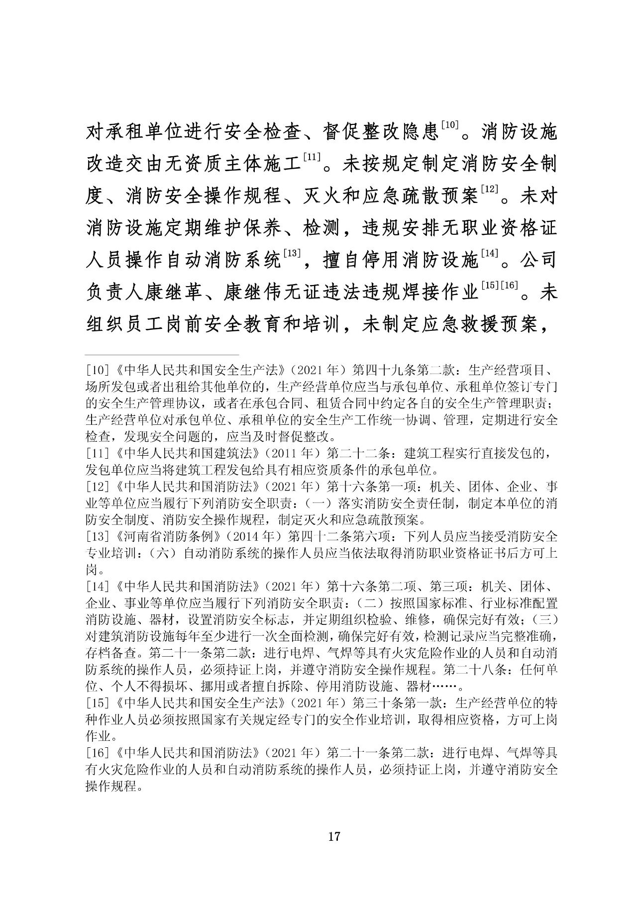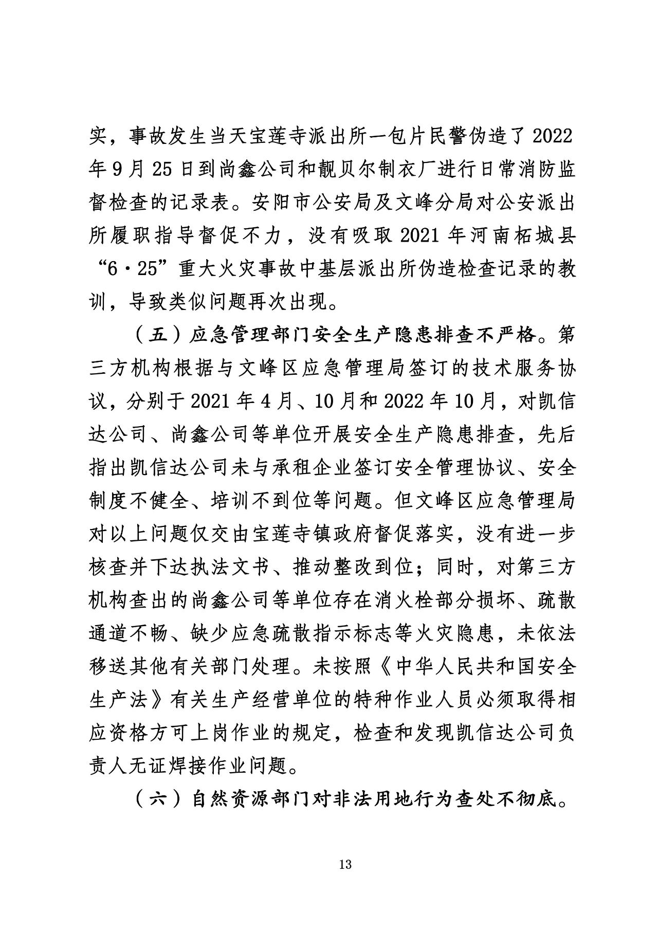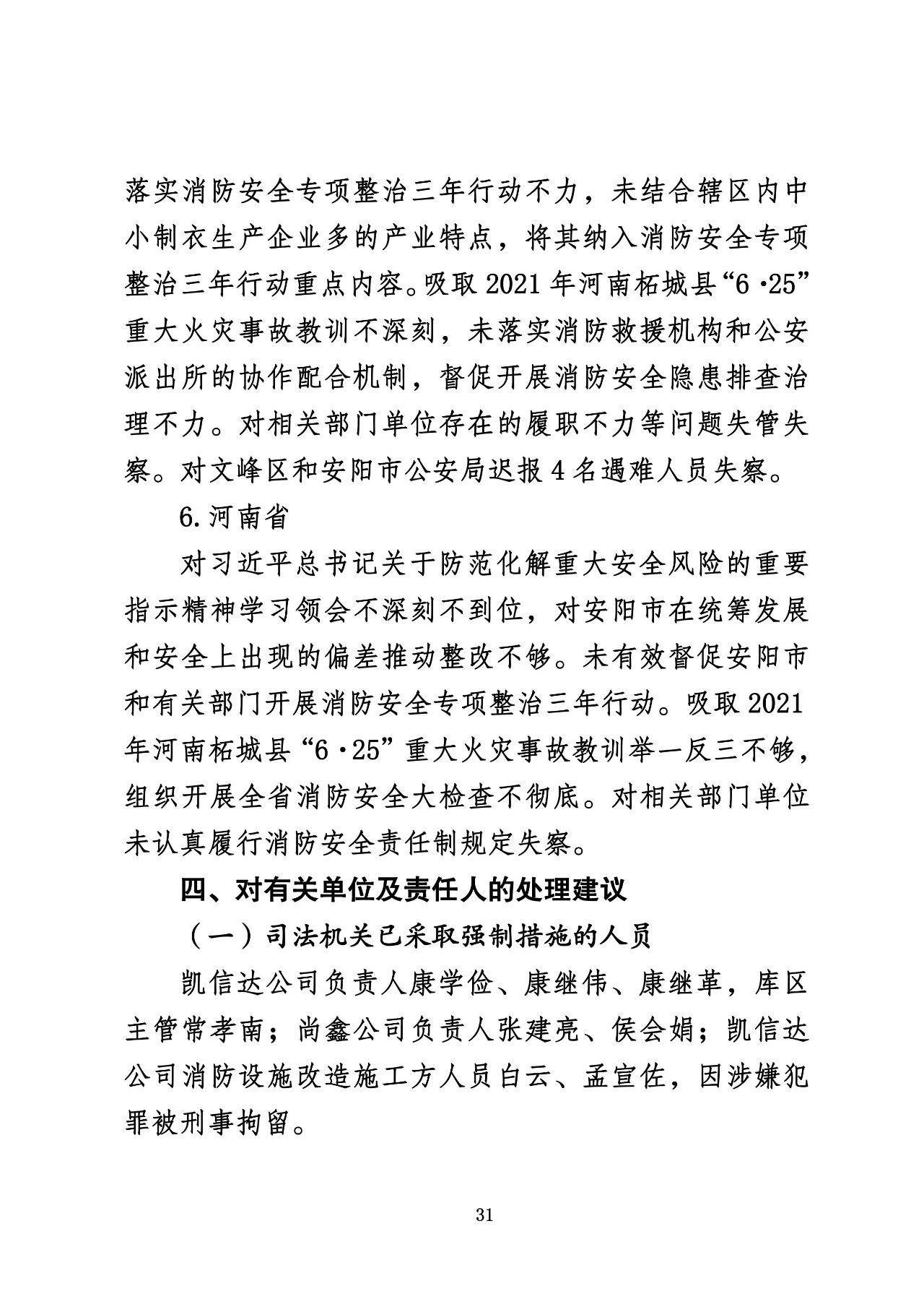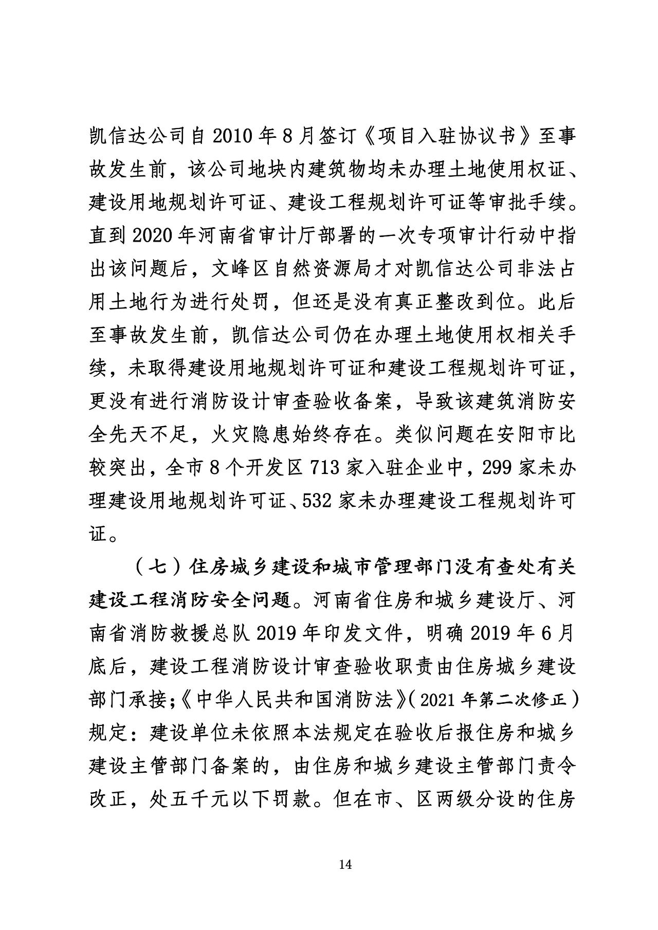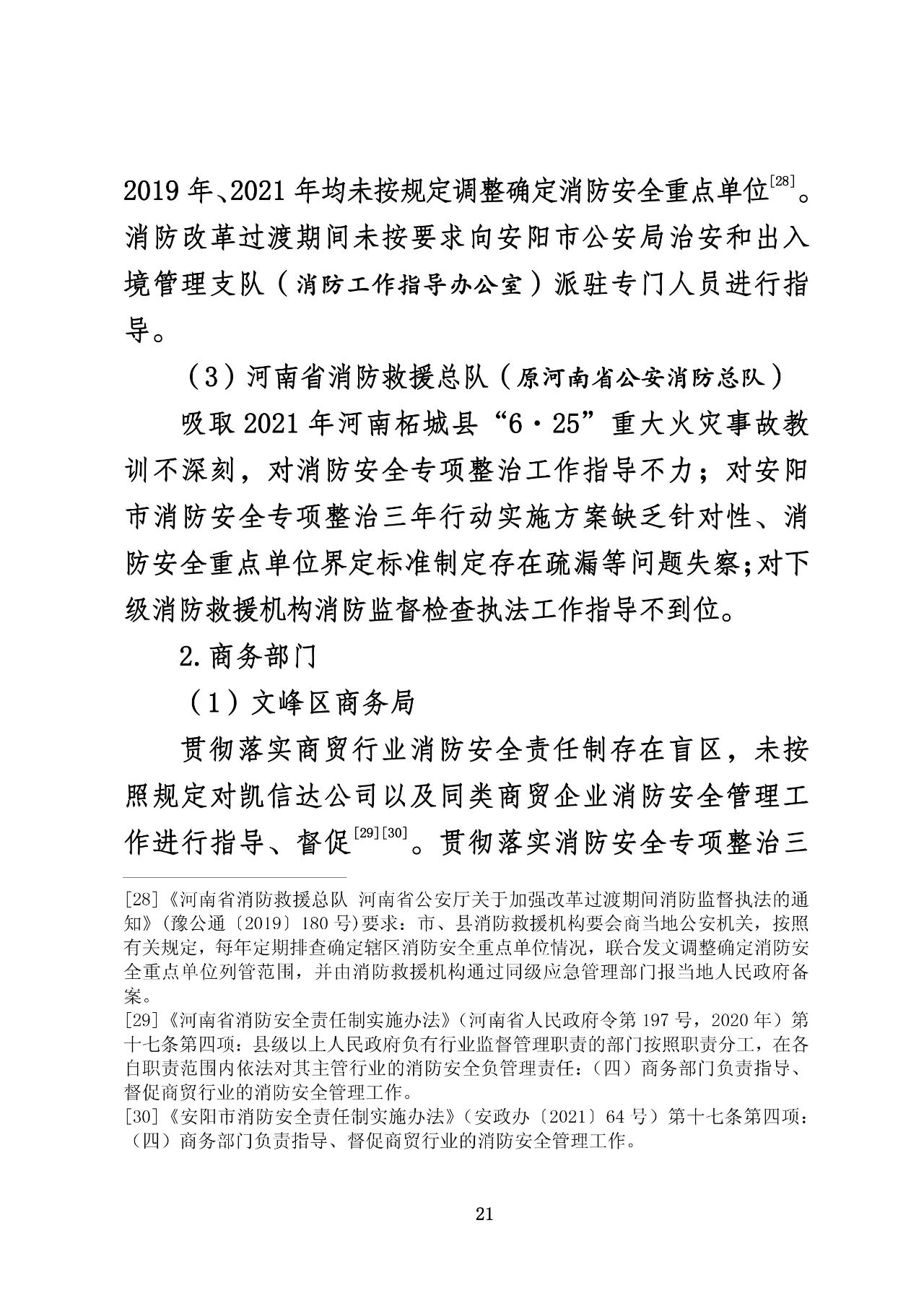 调查报告 | 河南安阳市凯信达商贸有限公司“11·21”特别重大火灾事故调查报告