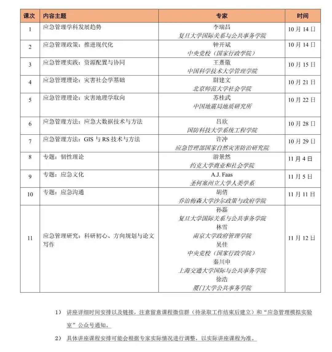 课程对象:本课程面向国内外高校青年教师、学生及实务工作者,选课学员应具备一定的应急管理知识,并对灾害、安全、危机和风险等主题有浓厚兴趣和深度思考。