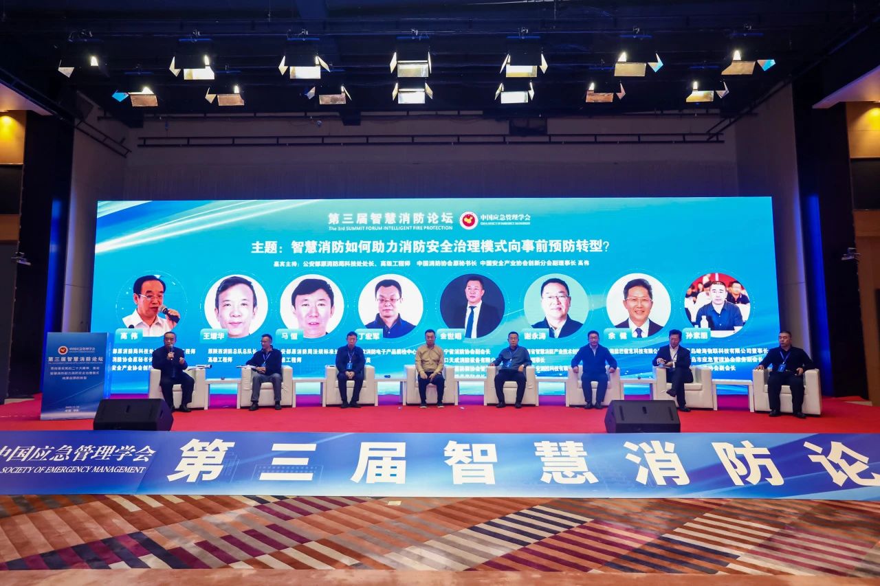公安部原消防局法规标准处处长、高级工程师马恒,国家消防电子产品质检中心副主任、研究员丁宏军,辽宁省消防协会副会长、营口天成消防设备有限公司总经理、中国灾害防御协会智慧消防专委会、副主任委员兼秘书长金世明,河南省智慧消防产业技术创新战略联盟执行理事长、河南力安测控科技有限公司董事长谢永涛,上海盐巴信息科技有限公司总经理余健,青岛峻海物联科技有限公司董事长孙素朋围绕“智慧消防如何助力消防安全治理模式向事前预防转型?”进行圆桌会议,发表出各自的意见和看法。