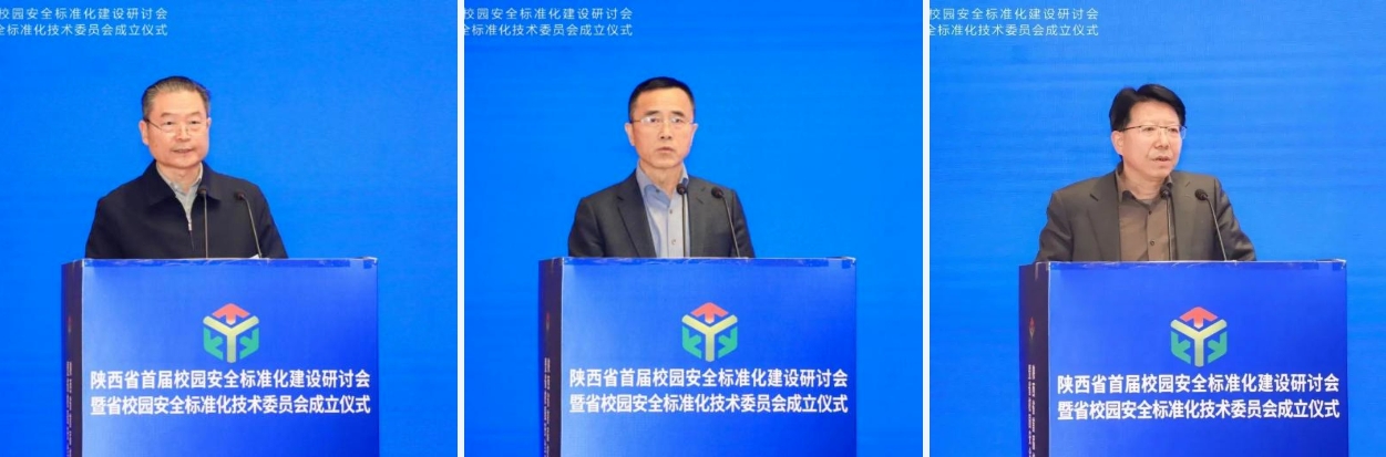 陕西省政协副主席李兴旺,中国应急管理学会副会长兼消防工作委员会主任、公安部原消防局政治委员、党委书记王沁林,陕西省人民政府教育督导委员会专职副主任、省政府教育总督学王恒斌分别代表陕西省政协、中国应急管理学会、陕西省教育厅作开幕式致辞,对研讨会的召开和标委会的成立表示祝贺和支持。他们表示,校园安全事故依旧多发频发,做好校园安全工作任重道远,标委会的成立标志着陕西省校园安全标准化建设走向了新的阶段,高质量高水平的校园安全将会主推陕西教育事业高质量发展,并呼吁各位专家同仁们共同打造校园安全标准化新高地。
