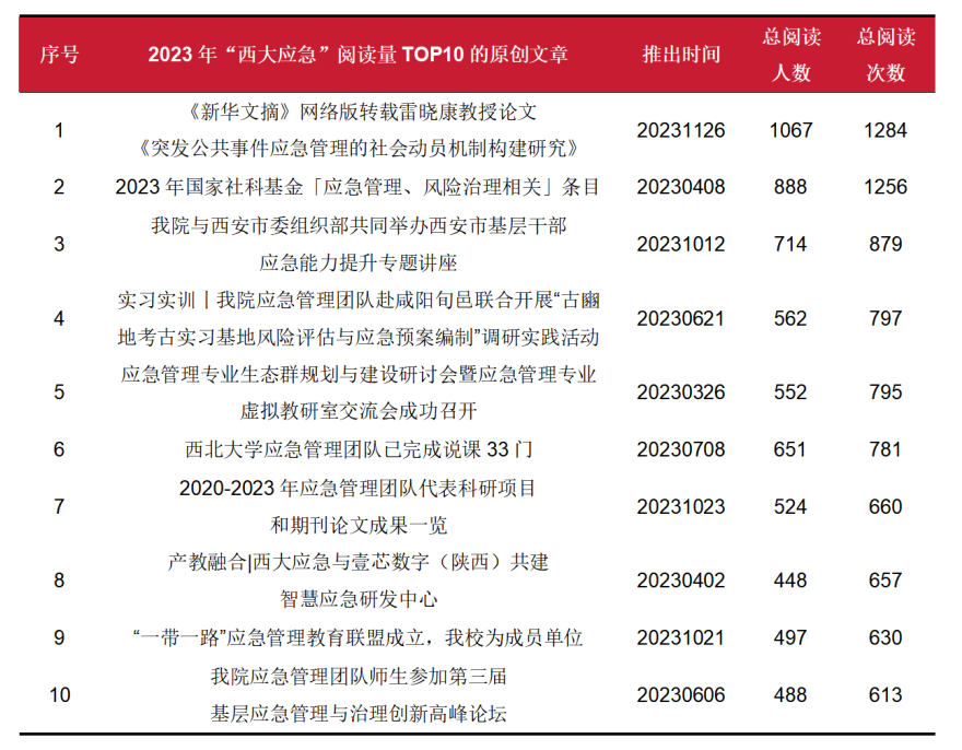 “西大应急”原创TOP10
